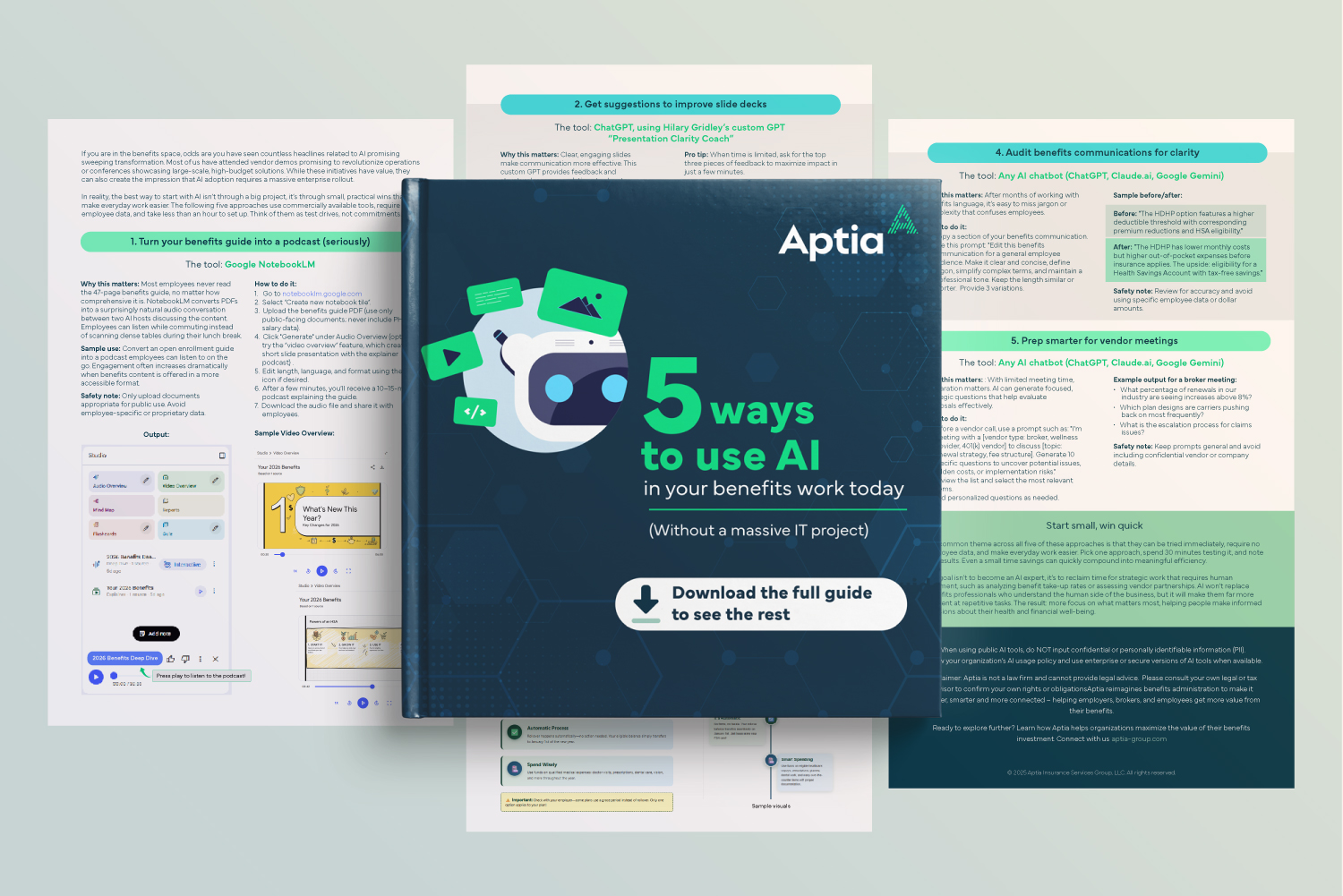 Most benefits professionals have seen the buzz around AI — from vendor demos touting game-changing tools to conferences spotlighting large, high-budget solutions. It’s easy to assume meaningful adoption requires a major enterprise initiative. But it doesn’t have to be big or complex. In our guidebook, you’ll find quick, practical wins you can use in under an hour, like turning your benefits guide into a short podcast, getting fast clarity edits for communications, creating simple visuals for HSAs and FSAs, and preparing sharper questions for vendor meetings.